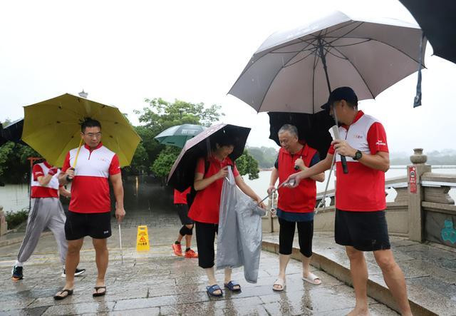 清晨微曦,惠州西湖水波轻漾,平湖门前已聚集起一群“红马甲”。他们中,有熟悉的本土卫士——惠州西湖小虎捡跑志愿服务队队员,也有远道而来的杭州伙伴——竹书鸿工匠志愿服务队队员。两地志愿者并肩出发,沿湖捡跑,以脚步丈量岸线,用双手还原美景清波。